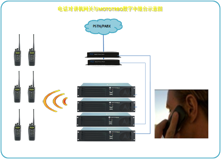 XIR R8200數(shù)字中繼臺(tái)連接對(duì)講機(jī)電話(huà)網(wǎng)關(guān),通過(guò)對(duì)講機(jī)電話(huà)網(wǎng)關(guān)接入PBX程控交換機(jī),通過(guò)程控交換機(jī)與有線(xiàn)電話(huà),手機(jī)互通,滿(mǎn)足各部門(mén)的有無(wú)線(xiàn)通信互通。
