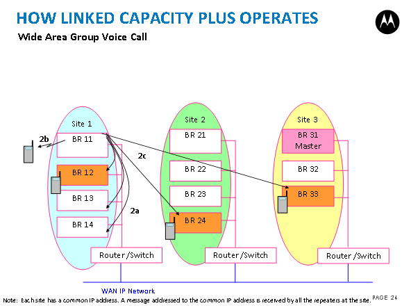 上圖是3基站聯(lián)網(wǎng)的廣域組通訊說明圖,可以同時在多基站做廣播。