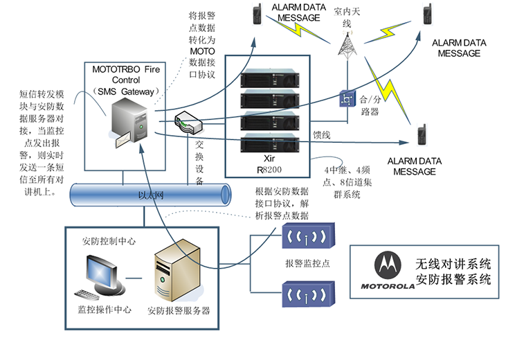 MOTOTRBO Fire Alarm Controller(以下簡(jiǎn)稱MFAC)可實(shí)現(xiàn)與酒店的安防告警系統(tǒng)對(duì)接,以文字短信的形式,第時(shí)間發(fā)送報(bào)警點(diǎn)信息至所有相關(guān)人員對(duì)講機(jī)上。