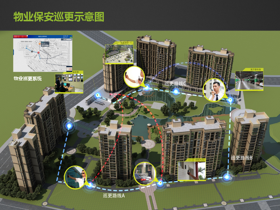 方案特點:成熟的網(wǎng)絡部署方案,通過IP互聯(lián)技術將不同地域的物業(yè)單位進行聯(lián)網(wǎng),統(tǒng)調(diào)度和管理從業(yè)人員。