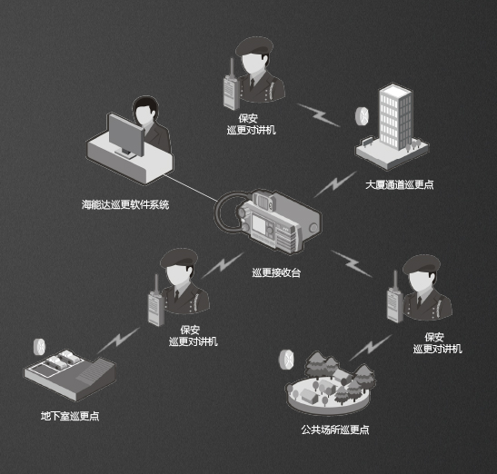 方案特點:部署方便,價格便宜,通過配備巡更接收臺,統(tǒng)控制巡更對講機上傳的巡更數(shù)據(jù)。