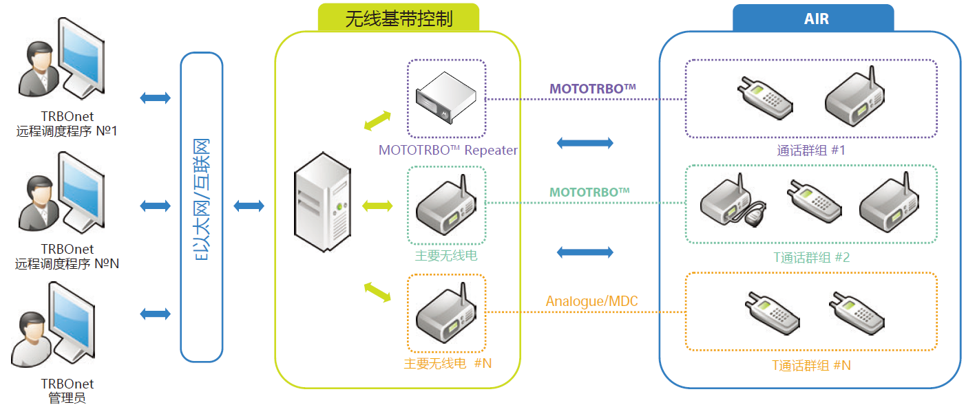 在無線對講系統(tǒng)中,TRBOnet.Enterprise 是針對 MOTOTRBO? 業(yè)數(shù)字雙向無線通訊系統(tǒng)的個人電腦主從式調(diào)度軟件應用。TRBOnet 是針對 MOTOTRBO? 無線通訊系統(tǒng)全新構(gòu)建的,它具有的特征,引著 MOTOTRBO? 基礎應用的較前沿。