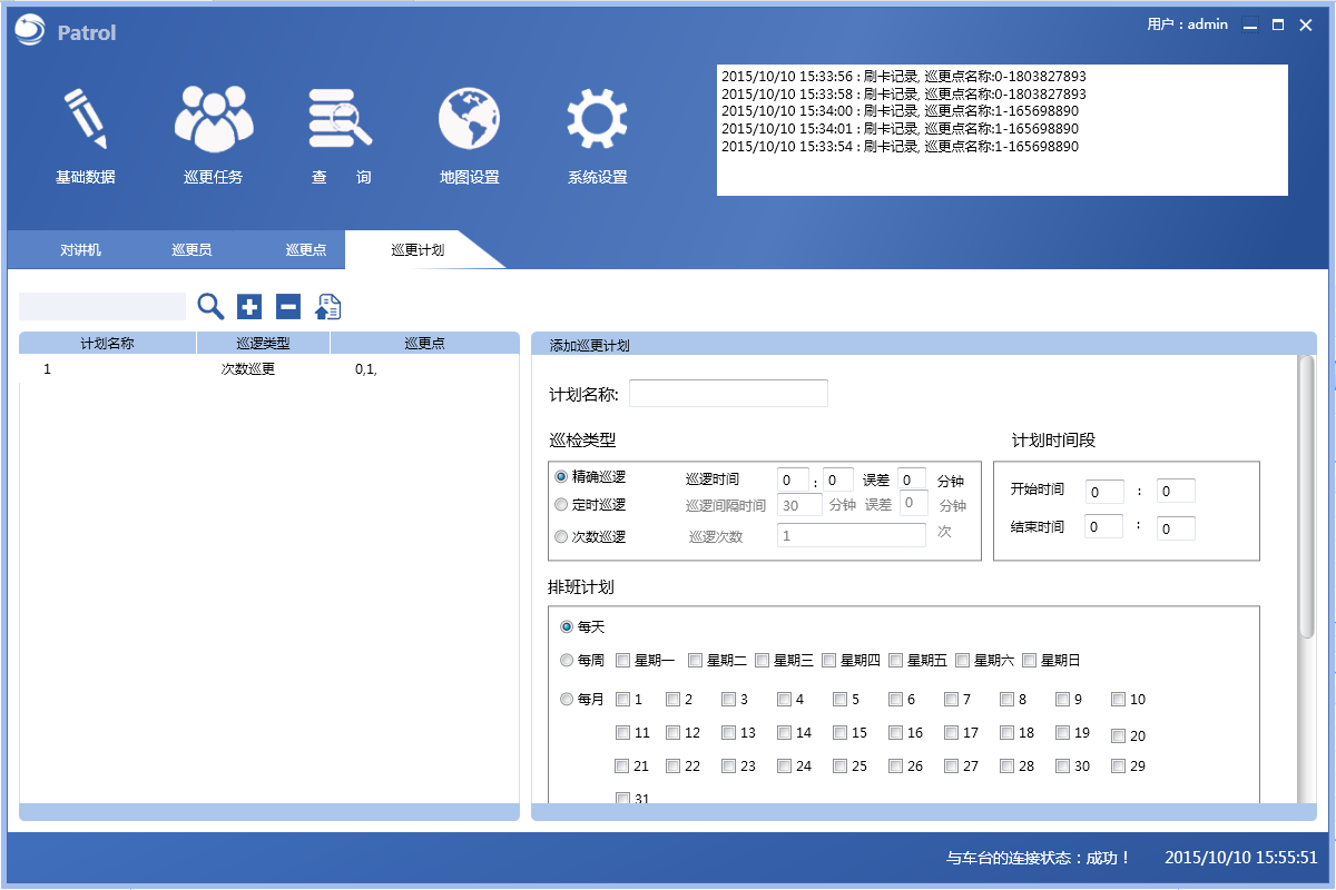在已經(jīng)設(shè)定好的巡檢路線上編制巡檢任務(wù),可以是常規(guī)任務(wù),也可是是突發(fā)任務(wù),根據(jù)需求可以實(shí)時(shí)改變?nèi)蝿?wù)時(shí)間以及次數(shù),以滿足不同情況下的不同需求。