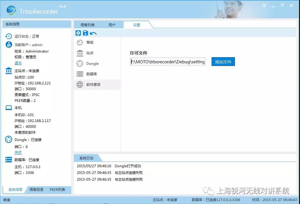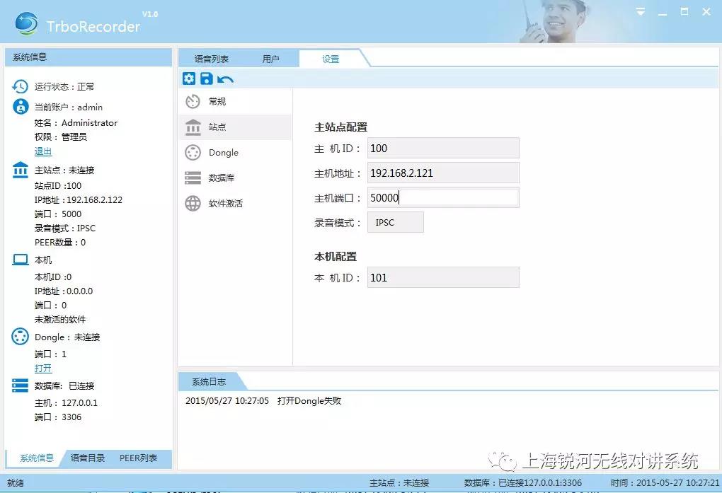 注冊成功后,軟件會顯示系統(tǒng)中所有在線Site(中繼臺)的ID。