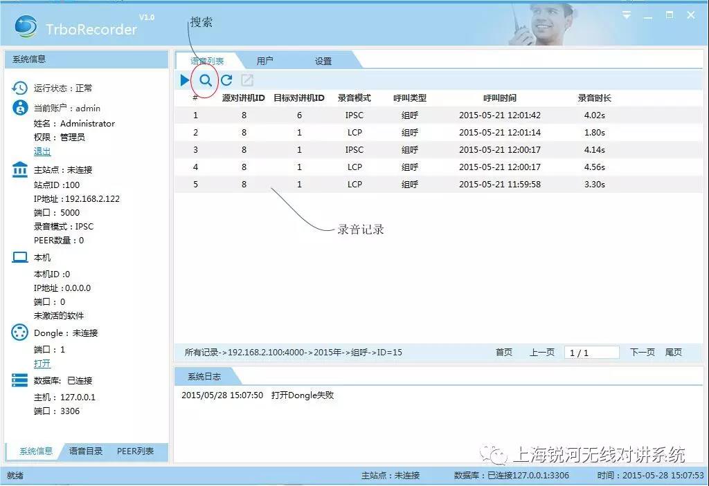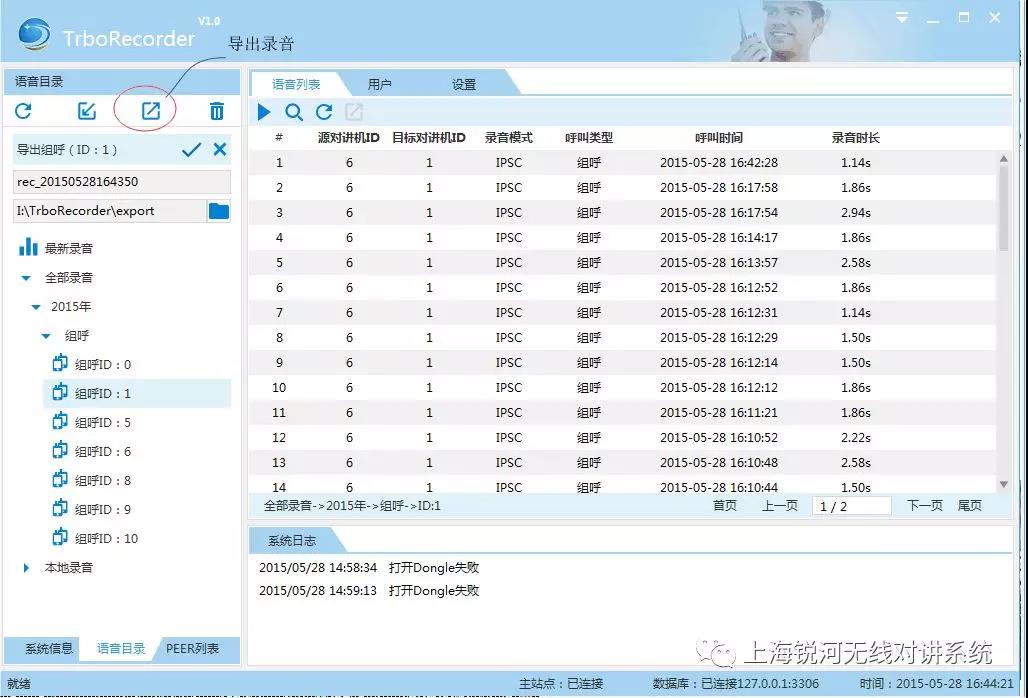 軟件會獲取并存儲所有系統(tǒng)內(nèi)通話的音頻碼流以及通話信息(主叫/被叫ID、通話時間等),音頻碼流的格式為DVSI的Ambe+2?,更多信息請訪問DVSI的官方網(wǎng)站。